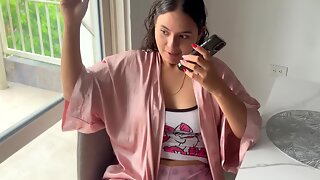 Plan cul en réalité avec une brune à grosse poitrine qui humilie son mec pour de l’argent