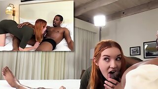 Belle hotwife chevauche un Bbc pendant que son mari se branle