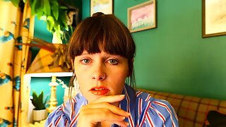 Verlegen jonge vrouw doet haar eerste erotische solo