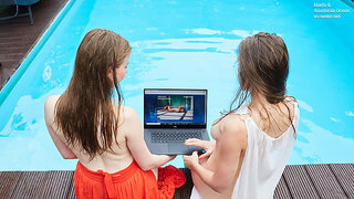 Steamy poolside and underwater sex - Riding my cock nonstop all day